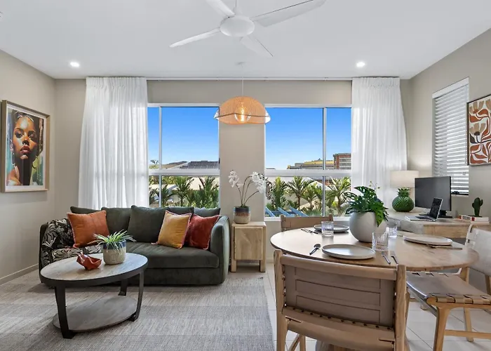 ベッドルーム1室のOceanside At 201 Lake Street ケアンズアパートはマディーズ プレイグラウンドとCairns Tropical Zooからわずか500メートルに位置し、プールの景色を望めます。 広々とした66m²のアパートは、お客様の快適な滞在のためにプールとテラスを提供しています。